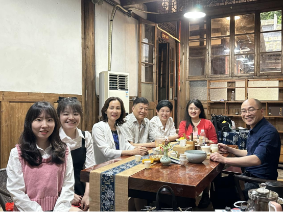 团队首先参观了近代福建翻译家林纾的故居,了解其在中国近代翻译史上所作出的贡献,进一步深化了解多位闽籍翻译家对近代社会转型所做出的突出贡献。团队在闽江边进行实地考察和采访,深入了解闽商文化的历史渊源。在此过程中,团队对厦门大学人类学一级教授彭兆荣教授进行英文采访,就闽商文化在国际传播中所面临的挑战、应对之策和前景进行了深入探讨。彭兆荣教授强调,闽商文化具有悠久的历史和文化底蕴,其在中国商业发展中扮演了重要角色,并在全球范围内占据着重要地位。他期望能够加强闽商文化国际传播的力度以及创新度,向更多国家和地区推广闽商文化以及“福”文化。