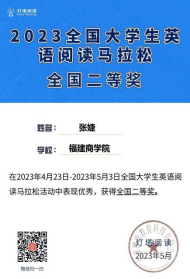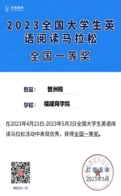 在为期10天(4月23日8点—5月3日8点)的2023全国老员工英语阅读马拉松活动中,公司员工积极参与,认真阅读答题,取得非常优异的成绩。其中,2020级商务英语专业曾洲桐同学获全国一等奖且排名第一,同样来自2020级商务英语专业的张婕和张雅龙同学获全国二等奖,来自2022级商务英语专业的程俊炜同学获全国三等奖。