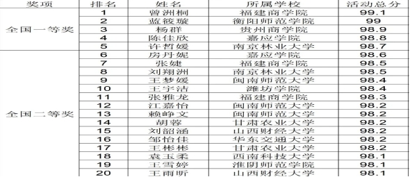 主办方公布的获奖名单截图