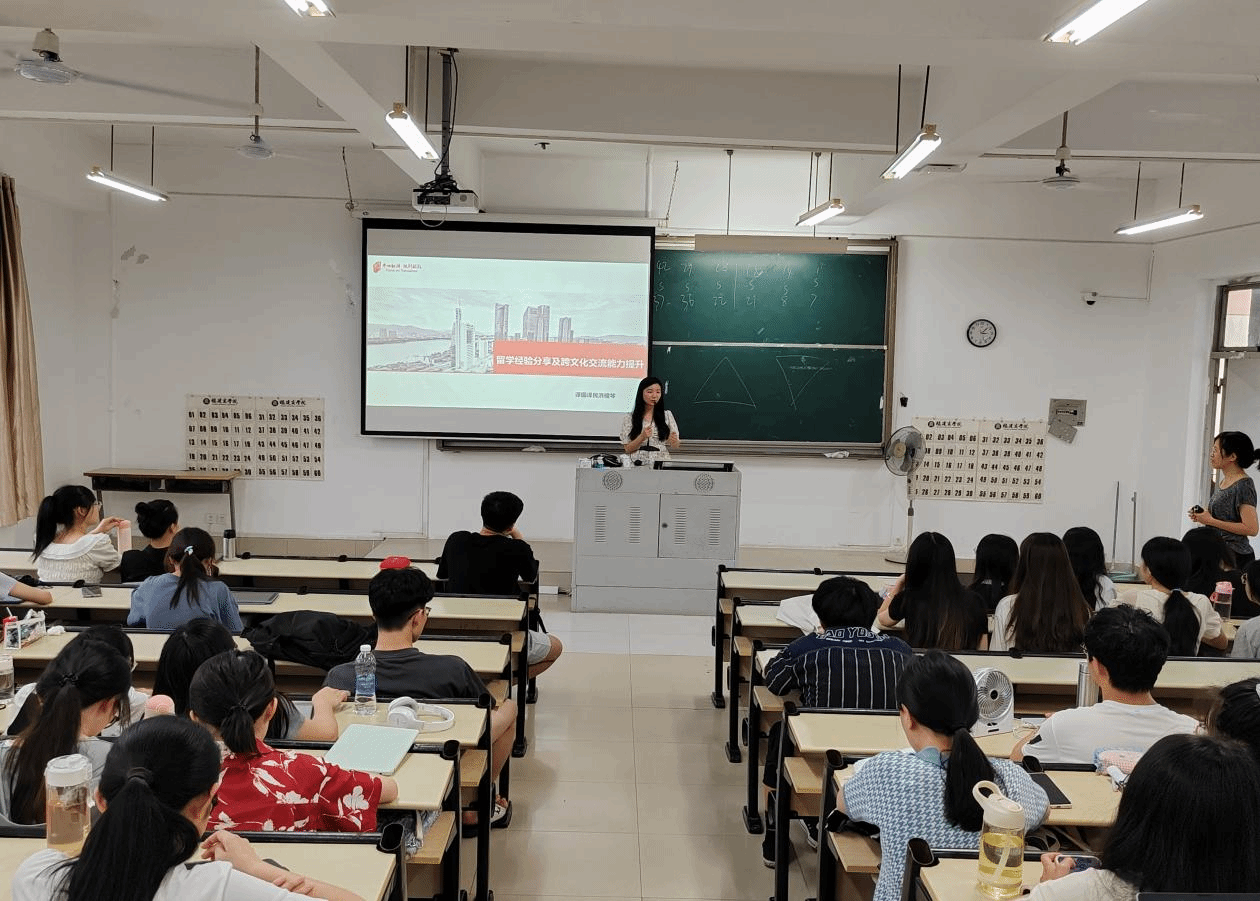 6月7日下午,福州译国译民翻译集团洪梫棽经理为商务英语专业员工作题为“如何克服就业恐惧”的讲座。洪经理根据个人留学经验讲解如何申请留学、留学前要注意的事项,以及在跨文化交际中需要注意点的问题和如何提升跨文化交际能力。