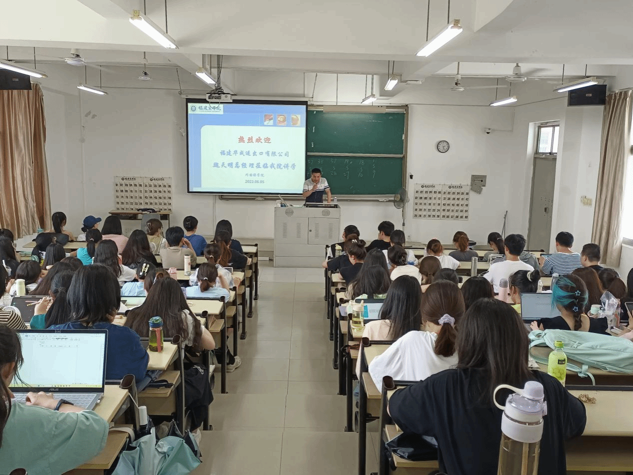 6月5日下午,福建华成进出口有限公司魏天明总经理为商务英语专业员工作题为“跨文化沟通与商务实践能力提升”的讲座。魏总经理从30多年的从业经验出发,用大量的实践案例分析如何提升跨文化沟通能力,从而能避免因语言和文化上的误解而带来的商业风险。