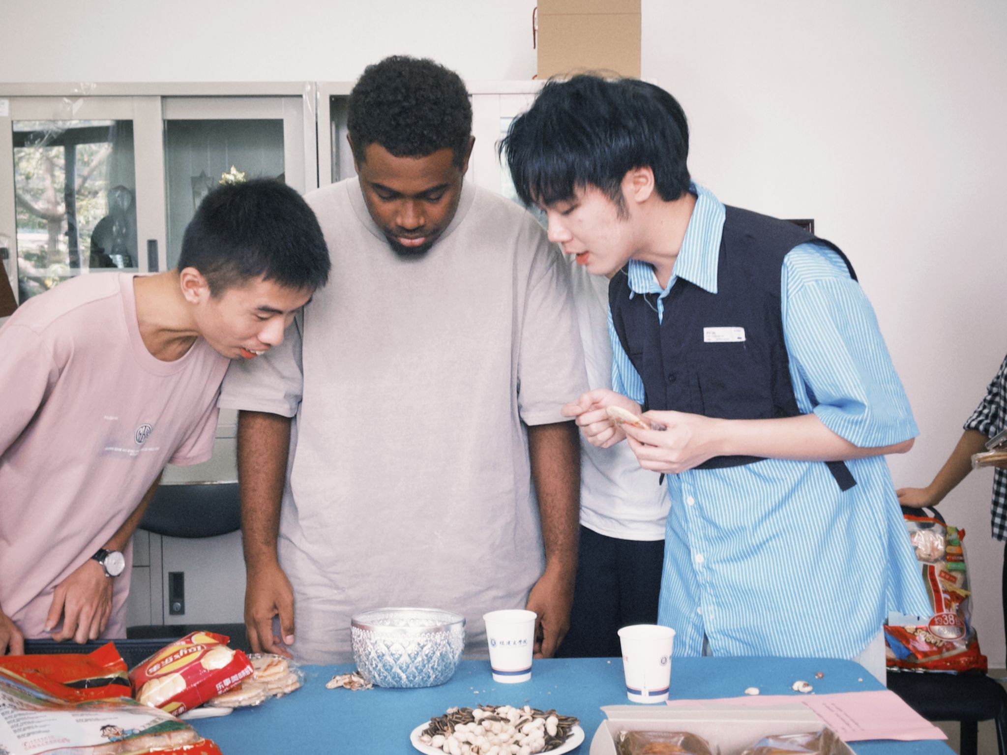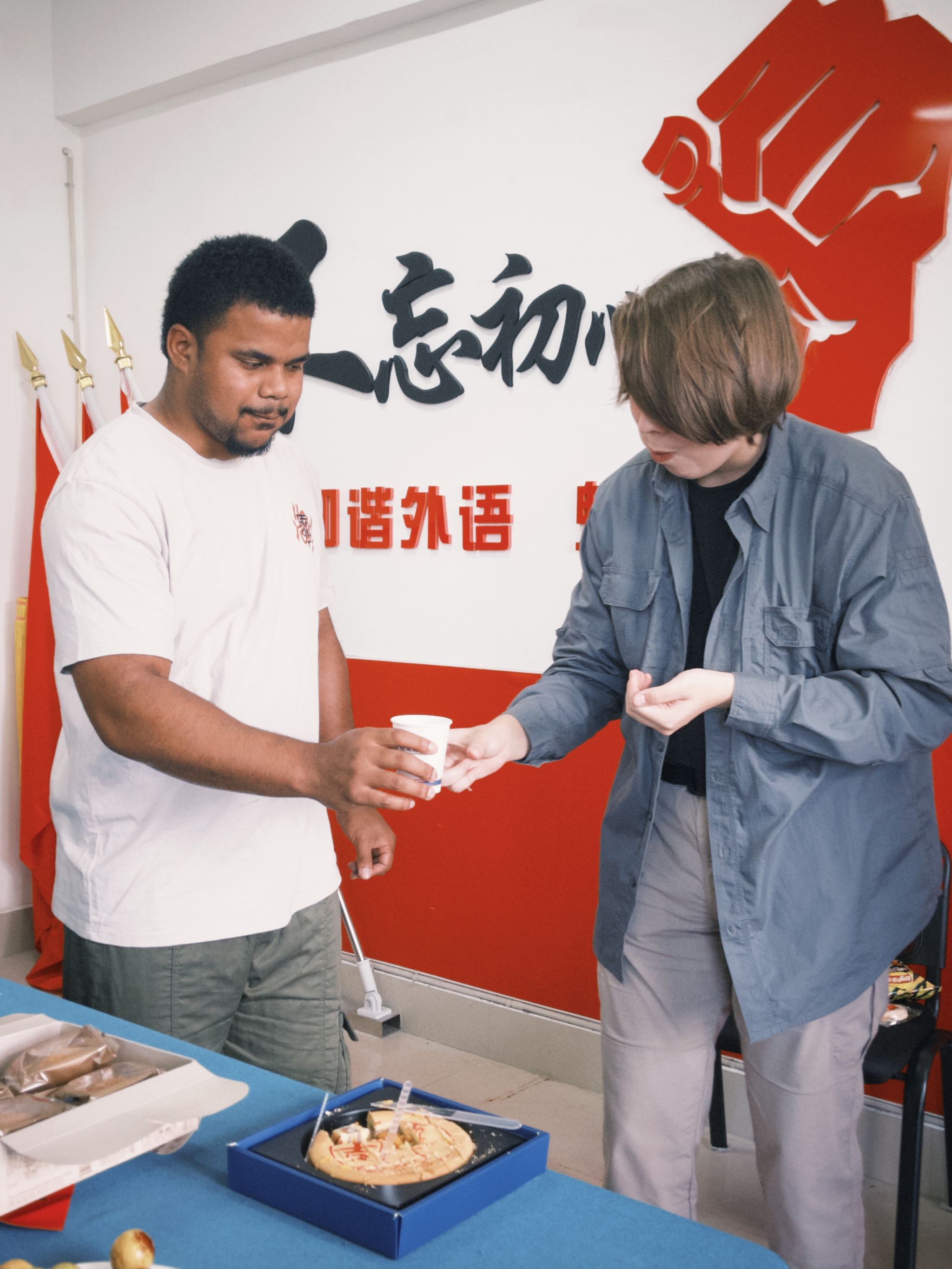 活动伊始,外国语公司党委书记林晓羽向国际员工表达节日的诚挚问候,询问了解同学们的学习进展、生活状况及遇到的困难,并安排辅导员老师认真记录,希望国际员工能尽快适应并融入校园生活。在随后的“博饼”环节,师生们聚集一起参与,现场欢声笑语不断,国际员工对中华优秀传统文化有了更加深刻的认识。