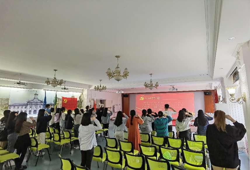 会议首先奏响义勇军进行曲,由张丹丹老师带领在场的全体毕业生党员起立,奏唱国歌,之后张丹丹老师对党员关系转接做了一系列详细的介绍。随后,由胡菁菁老师为毕业生党员做廉洁教育,寄语毕业生“廉洁从业,走好人生每一步”“不忘初心,永葆赤子本色”。最后翁云星老师发表毕业生党员离校教育讲话,殷切期望各毕业生党员在外牢记党的使命、踏实努力工作,也能够寻得机会回母校看看,永远心怀希望,永远积极向上。大会在毕业生党员重温入党誓词,再次进行庄严的宣誓中结束。