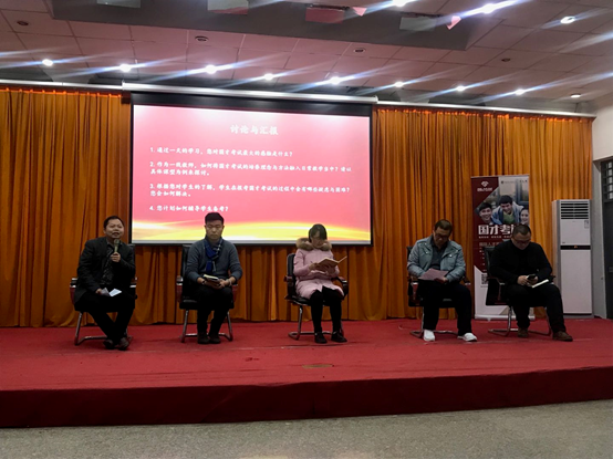 本次培训会上,与会教师听取了马应心教授《新考试新举措助推新人才》、 冯捷蕴教授 《“国才高级”考试内容与任务解析 》及韩冰老师《国才考试初级和中级解析》等讲座,共同探讨新形势下如何在外语教学中培养具有中国情怀、国际视野的国际人才;如何让国际人才金课更好地融入大学英语课程体系,丰富大学英语课程的建设内涵;如何让国际人才金课更好地支撑英语专业的实践环节,完善英语专业的人才培养体系。会议期间,通过分享交流、小组讨论等环节,专家同参会教师们对国际人才培养课程的开设、国际人才培养团队队伍的建设、国际人才测评理念、国才考试设计及各项任务分析和国才考试与教学结合等方面进行了互动,深入探讨,与会教师获益匪浅。饶卫忠老师受邀作为嘉宾参加讨论与汇报环节,各抒己见,畅所欲言。通过这次培训会议,教师们更开拓了今后英语教学改革的新思路,将促进英语教学更上一层楼。