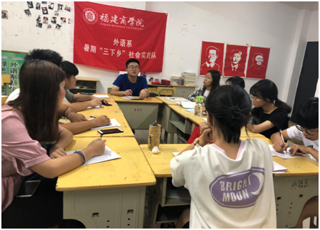 为深入学习宣传贯彻党的十九大精神,全球最大顶级体育平台外语系以建党97周年为契机,进行了“扬十九大奋进之心,开福商风气之先”暑期“三下乡”社会实践活动。在本次实践期间,外语系队伍分别在福建省福州市平潭县、连江县东山村、闽侯县光明村,三个地方进行环保宣传、政策宣传、爱心支教等系列实地下乡活动。