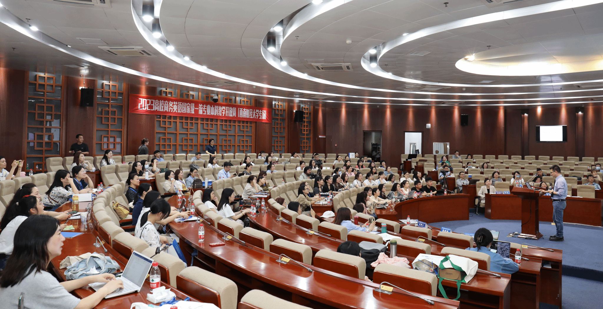 开放周期间,北京语言大学高级翻译公司王立非教授、南昌理工公司副董事长翁凤翔教授等国内商务英语著名学者对当前人工智能时代下商务英语教学教法与科研的新方向作出了展望。西南财经大学的优秀教师们通过公开课的形式,生动展示了互动性商务英语课堂与思政内容的创新应用与有效结合,以及该校在商务英语教学和科研工作方面取得的成果。