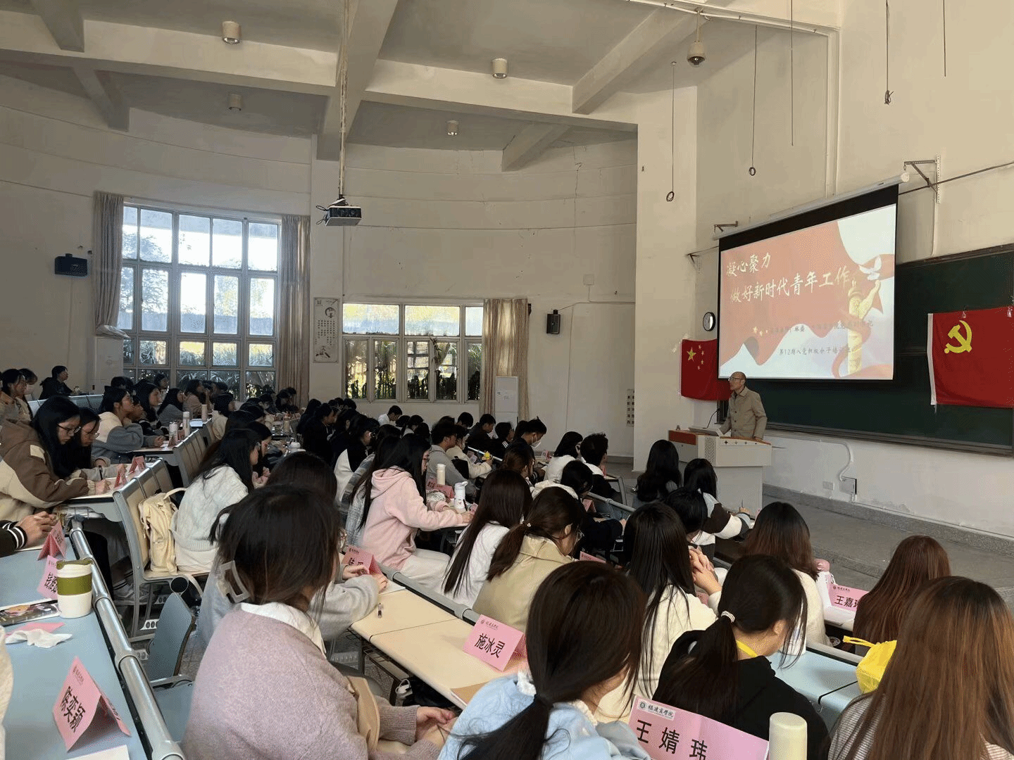 下午1点,主持人宣布仪式正式开始。随后,林盛副书记为入党积极分子上了一堂专题党课。课上,林盛副书记强调了要把青年工作作为战略性工作来抓,并从原则遵守、路径选择等三方面对做好新时代青年工作提出要求。林盛副书记不仅指出做好青年工作需要培养人、用好人、利用科学理论和实际案例解决问题,还生动引用哈佛大学的员工为例,以说明建立目标的重要性。他强调要从理论、历史、实践三维度培育青年,并鼓励同学积极参与实践活动、坚定理想信念,争取早日成为一名光荣的共产党员。最后,本次的开班仪式在同学们阵阵掌声中落下帷幕。