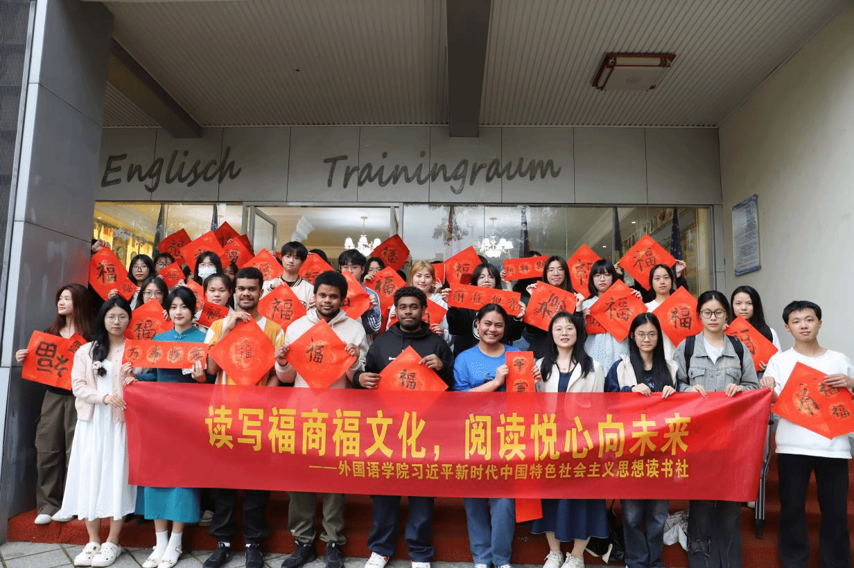 本次活动共设“红色经典共读”“中外学子共书‘福文化’”等环节。读书社的成员们通过深度学习,不仅了解了“福”文化的历史渊源、文化内涵及现代价值,同时通过体验书法感受了中华优秀传统文化的魅力,展示了自己的作品并分享制作过程的心得体会。活动过程中还设置了“福”文化知识竞答环节,使活动现场增加了不少趣味性。