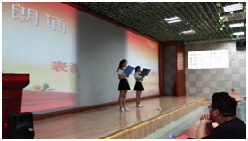 在党建助理团的干事们带来了一系列表演过后,陈香清同志作为毕业生党员代表,给与会的同学们带来了一系列学习生活以及实习生活中的经验分享。外语系员工党支部书记杜吴明同志就陈香清通知的发言发表了自己的看法。