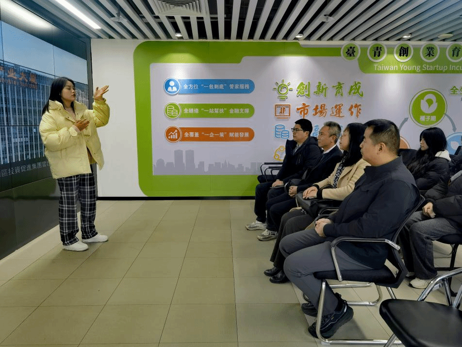 平潭台青创业育成中心黎明杰主任对公司师生莅临参观表示热烈欢迎,并带领大家参观了入驻企业的办公区域,详细介绍了平潭对台青创业的一系列扶持政策。黎总表示,双方可以围绕外语专业人才在跨境电商、文化旅游等领域开展深度合作,共同探讨“外语+跨境”“外语+文旅”的两岸人才培养模式。