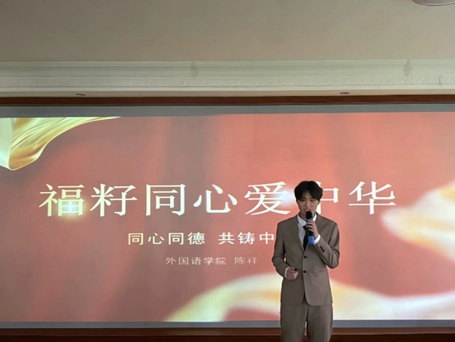 赛场上,各班参赛代表围绕“福籽同心爱中华”的主题,结合对民族文化的学习和认知,热切表达对祖国和各民族的赞美。选手们演讲情感丰富,语言真挚有力,充分展现外语学子与祖国同呼吸、共命运的深高度情怀和“花开八闽石榴红,福籽同心一家亲”的美好情谊。
