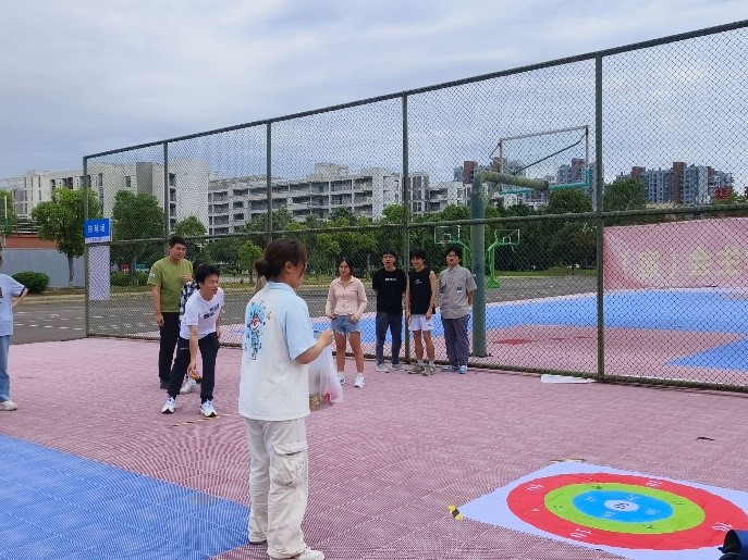 本次趣味运动会共设驿站传书、一圈到底、合力建塔、沙包投掷和看图识色五个项目,从不同方面考验了同学们的默契和团队协调能力。尤其是在合力建塔比赛中,团队成员们齐心协力,一同拉紧绳子控制塔钩以将塔块叠起,争取在最短的时间内搭塔成功。每一步都对团队成员们间的默契与合作精神有着极高要求。参赛选手们共沐阳光下,在各个挑战中团结作战,乘风而上,在汗水的挥洒与青春的炽热中并肩成长。场下同学不时地鼓劲呐喊,欢声笑语,在青春洋溢中将热情染满了整个活动现场,构成了一幅幅以青春为底色的奋进图画。