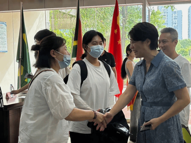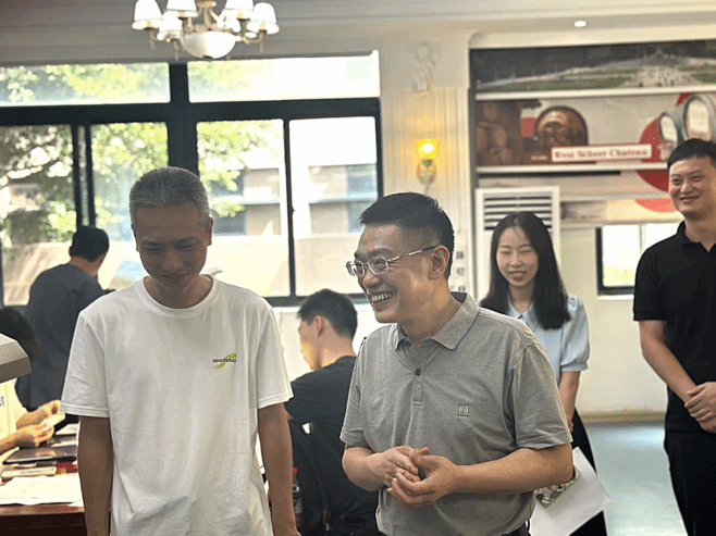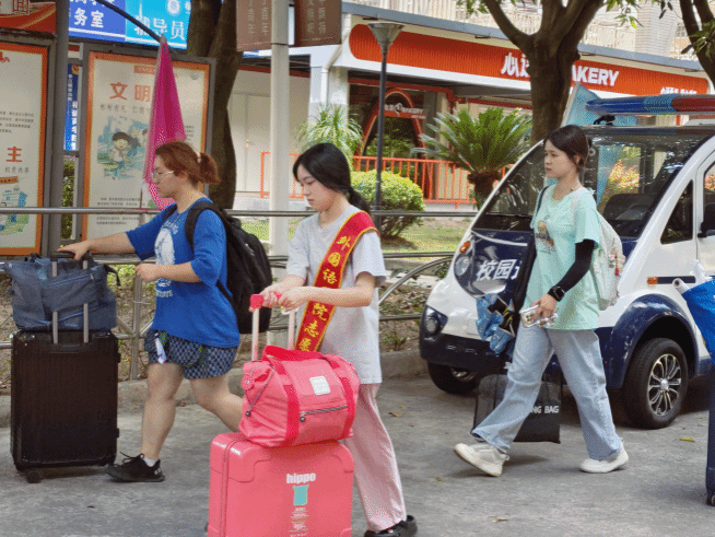 公司党委书记吴访益、董事长程灵、纪委书记林宇峰莅临现场,亲切问候迎新现场的师生,并对前来报到的家长和新生表达了诚挚的欢迎。身披红色绶带和马甲的志愿者们分布在各个迎新站点,他们顶着烈日帮助新生搬运行李、提供校园导览、介绍校园布局,井然有序地带领新生前往外语体验中心办理入学手续,以饱满的热情迎接五湖四海的外语人,以实际行动诠释“以心换新”的迎新理念。