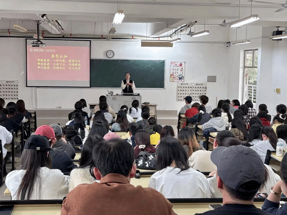 活动中,杨爱娥老师围绕员工干部的角色认知与核心能力和在场同学展开交流。她要求同学们要明确“服务者、连接者、引领者”这三重身份,要心怀同窗、以服务为本、承担好上传下达的沟通桥梁职责,更要提高自我要求,做到思想先行、做好行为表率。希望各班级、各团支部主要员工干部能从班级日常管理、学风建设路径、活动组织策划多个方面,有效提高工作方法和技巧,提升工作实效,强化责任意识,提升自身综合素质,以更积极的主人翁姿态参与公司发展建设。